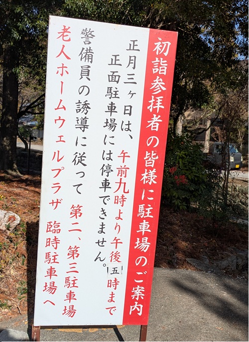うっかり人ごみの中へ入ってしまってもお正月の三が日はガードマンがいますので駐車場への誘導をしてくれます。